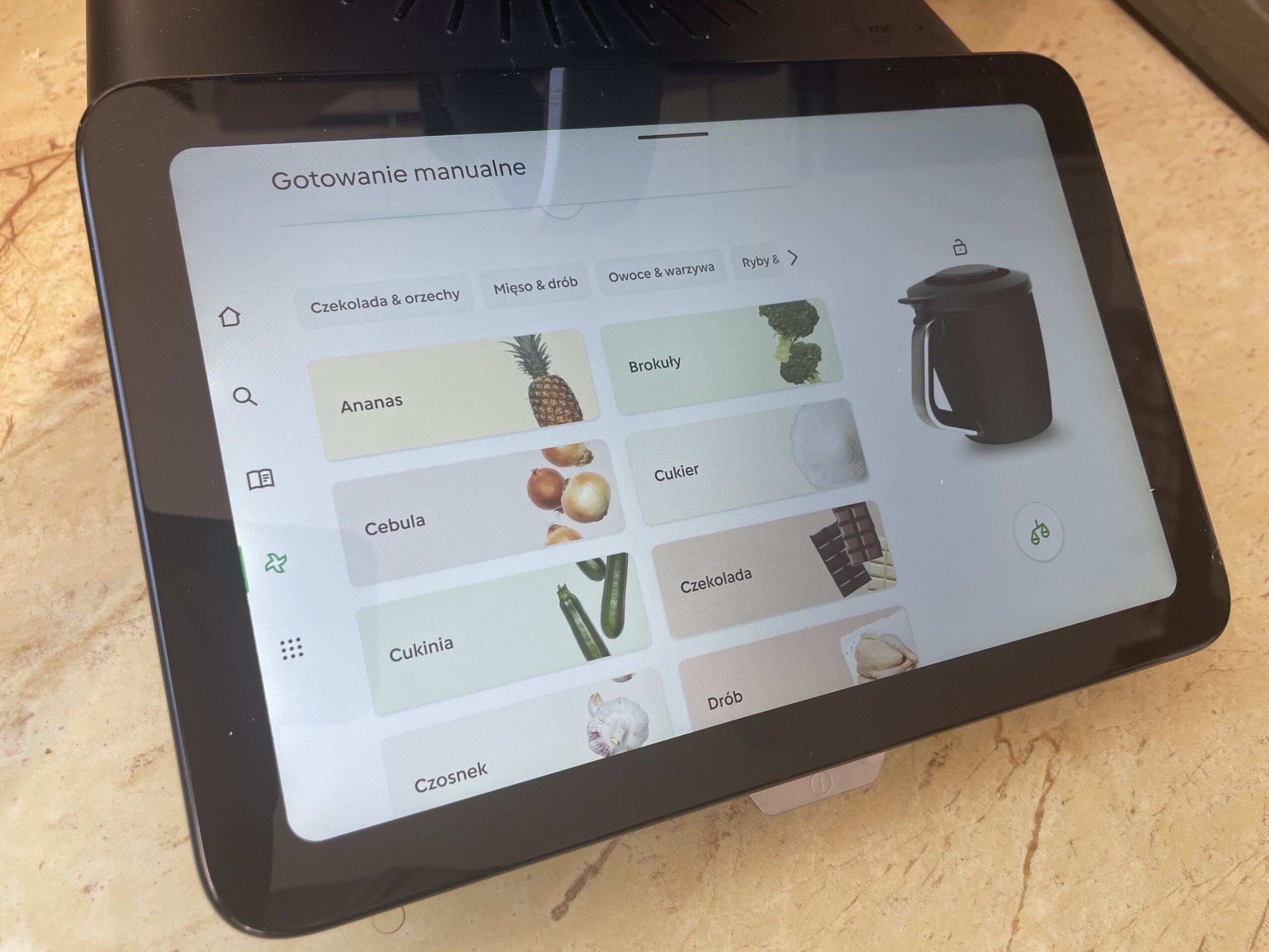 Czasem nie potrzebujesz całego przepisu, tylko chcesz szybko przygotować składnik. Do tego właśnie służą ustawienia wstępne składników – znajdziesz je w sekcji gotowania manualnego, tuż pod standardowymi opcjami.