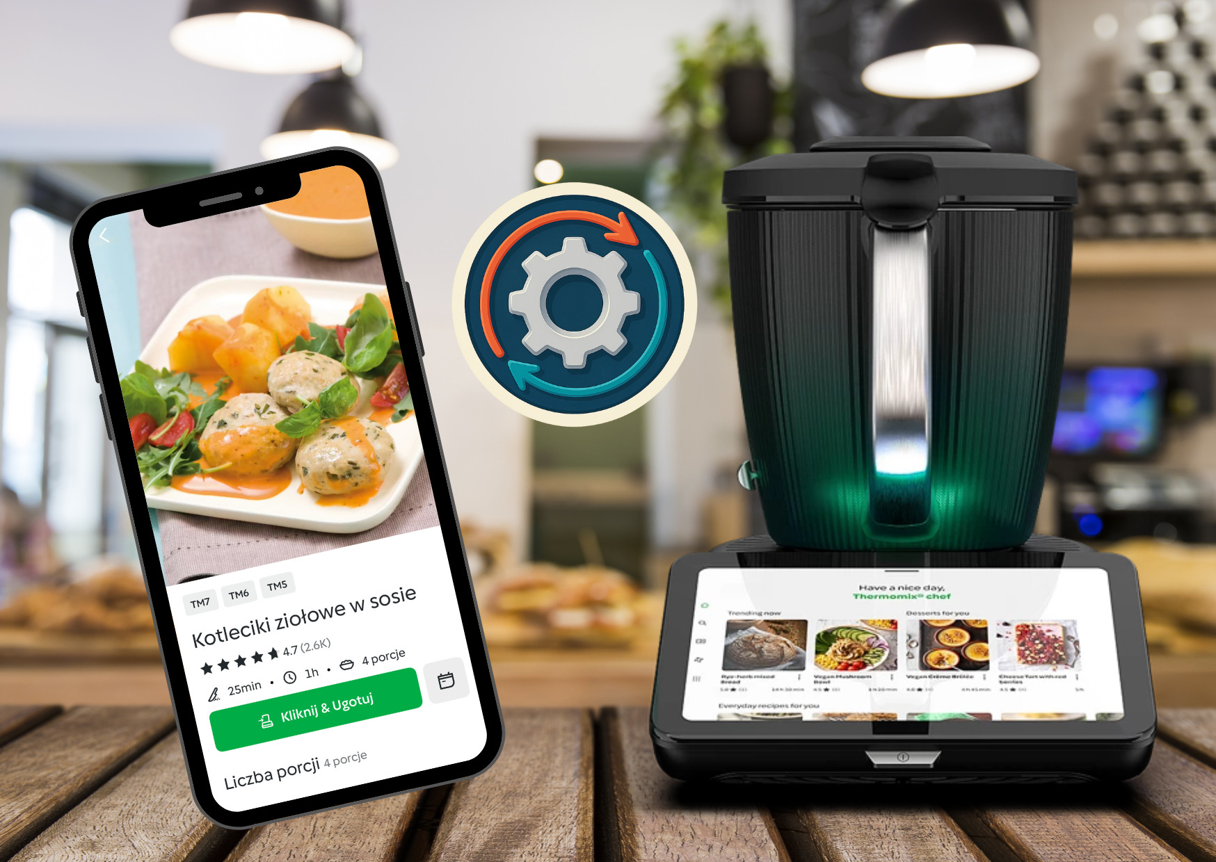 Wyobraź sobie, że widzisz w aplikacji przepis, który od razu chcesz przygotować. Teraz nie musisz już wpisywać go na ekranie Thermomixa czy dodawać do mojego tygodnia – wystarczy jedno kliknięcie, a wszystko pojawia się automatycznie na TM7.