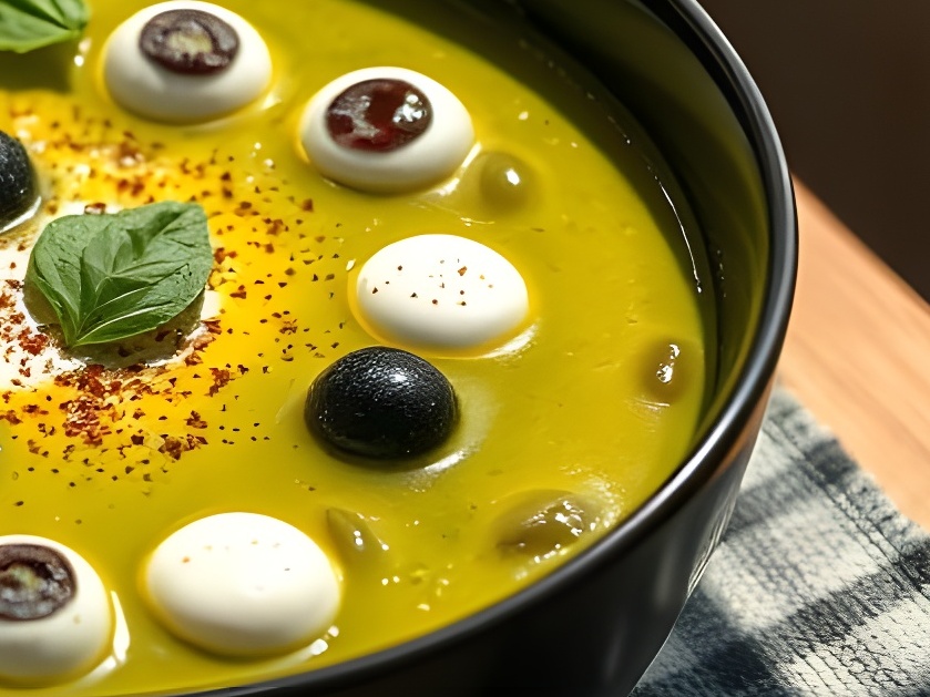 Kremowa zupa z zielonego groszku i bazylii nie tylko pięknie wygląda, ale też doskonale rozgrzewa w chłodne wieczory. To świetny pomysł na szybki i zdrowy posiłek, który w kilka chwil zamienisz w halloweenowe danie dzięki kulkom mozzarelli z oliwkowym spojrzeniem. Jeśli używasz mrożonego groszku, pamiętaj, żeby rozdzielić ziarna przed gotowaniem – dzięki temu zupa ugotuje się równomiernie i zachowa intensywnie zielony kolor.