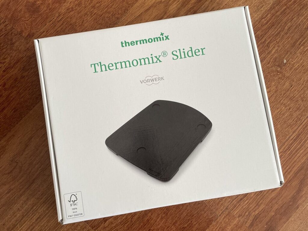 - Drewniana deska pod Thermomix — stabilna, solidna, z wycięciami dopasowanymi do urządzenia. Według mnie to must have dla osób, które mają Thermomix TM6. Deska pozwala przesuwać Thermomix po blacie bez ryzyka uszkodzenia wagi.