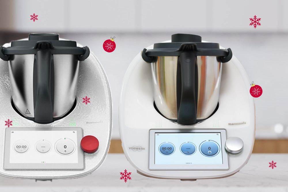- klasyczny biały model TM6 w połączeniu z limitowanym śnieżnobiałym Thermomixem Rudolf, lub